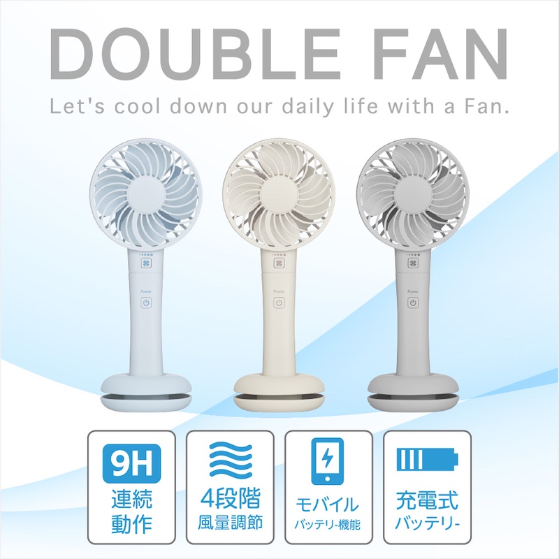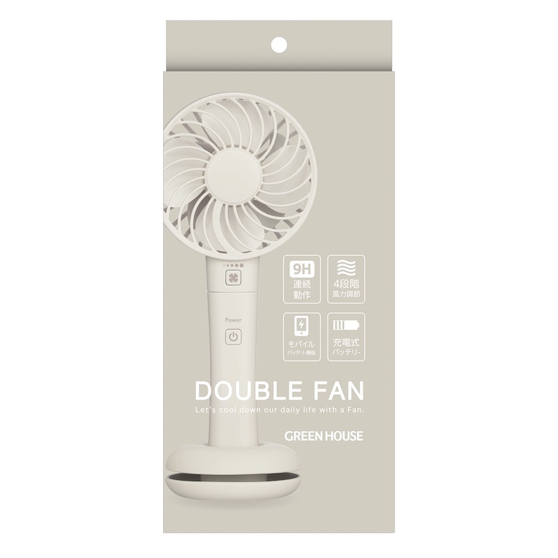 グリーンハウス スマホ充電可能手持扇風機 ダブルファン ベージュ 約155g