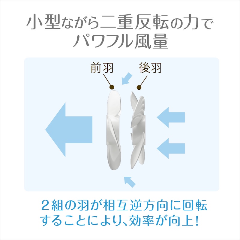 二重反転ファンにより、