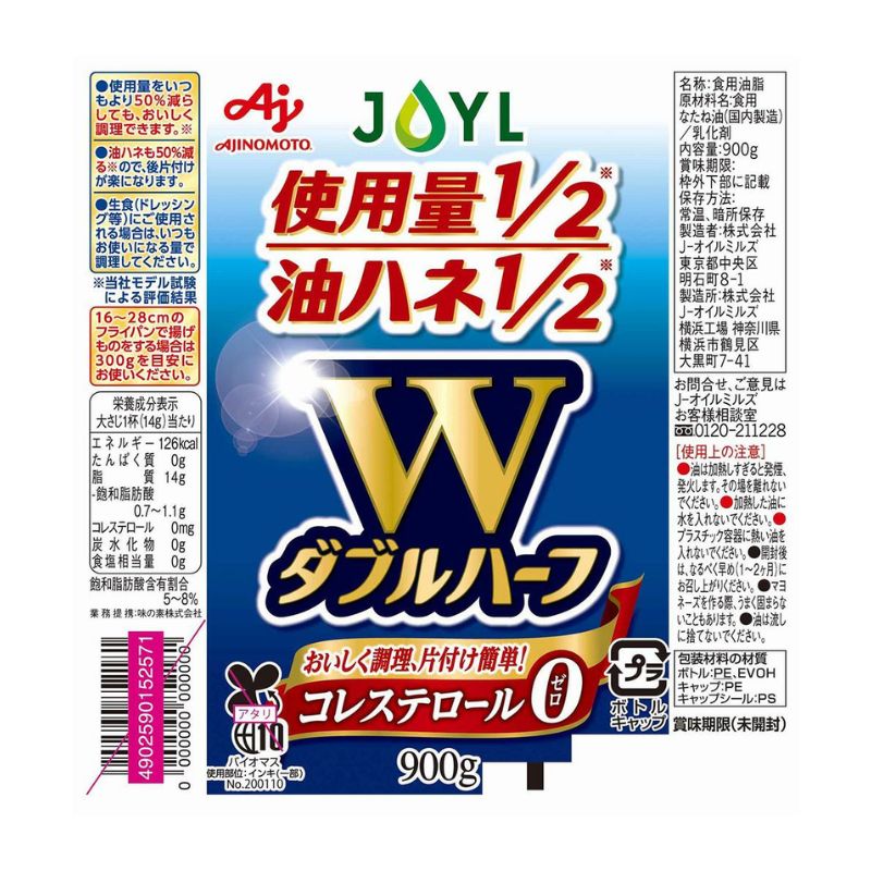 [2個]J-オイルミルズ 味の素 ダブルハーフ 900g 賞味期限2026.04.30