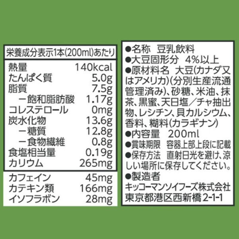 [18本]キッコーマン 豆乳飲料 抹茶 200ml 賞味期限2026.03.17【賞味期限間近】